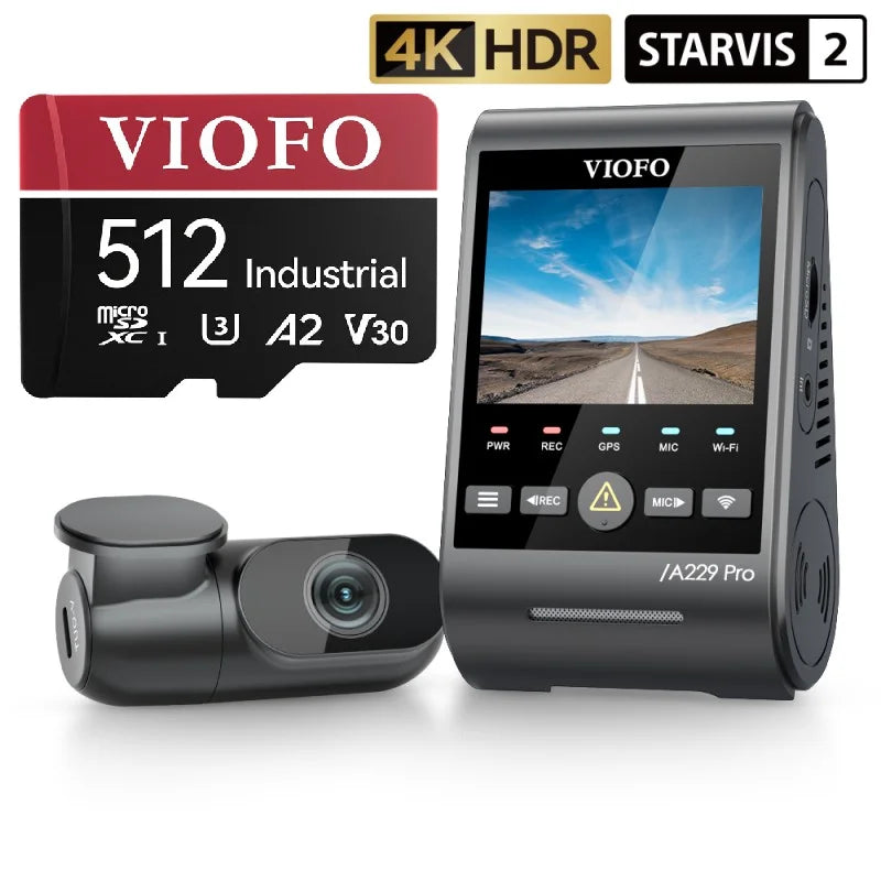 VIOFO A229 PRO 2CH FRONT AND REAR 4K+2K HDR DUAL DASH CAM WITH SONY STARVIS 2 SENSORS SUPER NIGHT VISION VOICE CONTROL